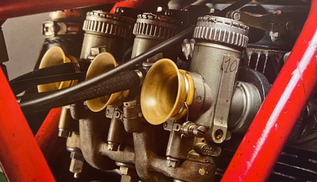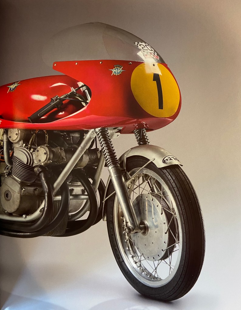This model was brought to victory many times by John Surtees, world champion of class 500 in ’56, ’58, ’59, and ’60.